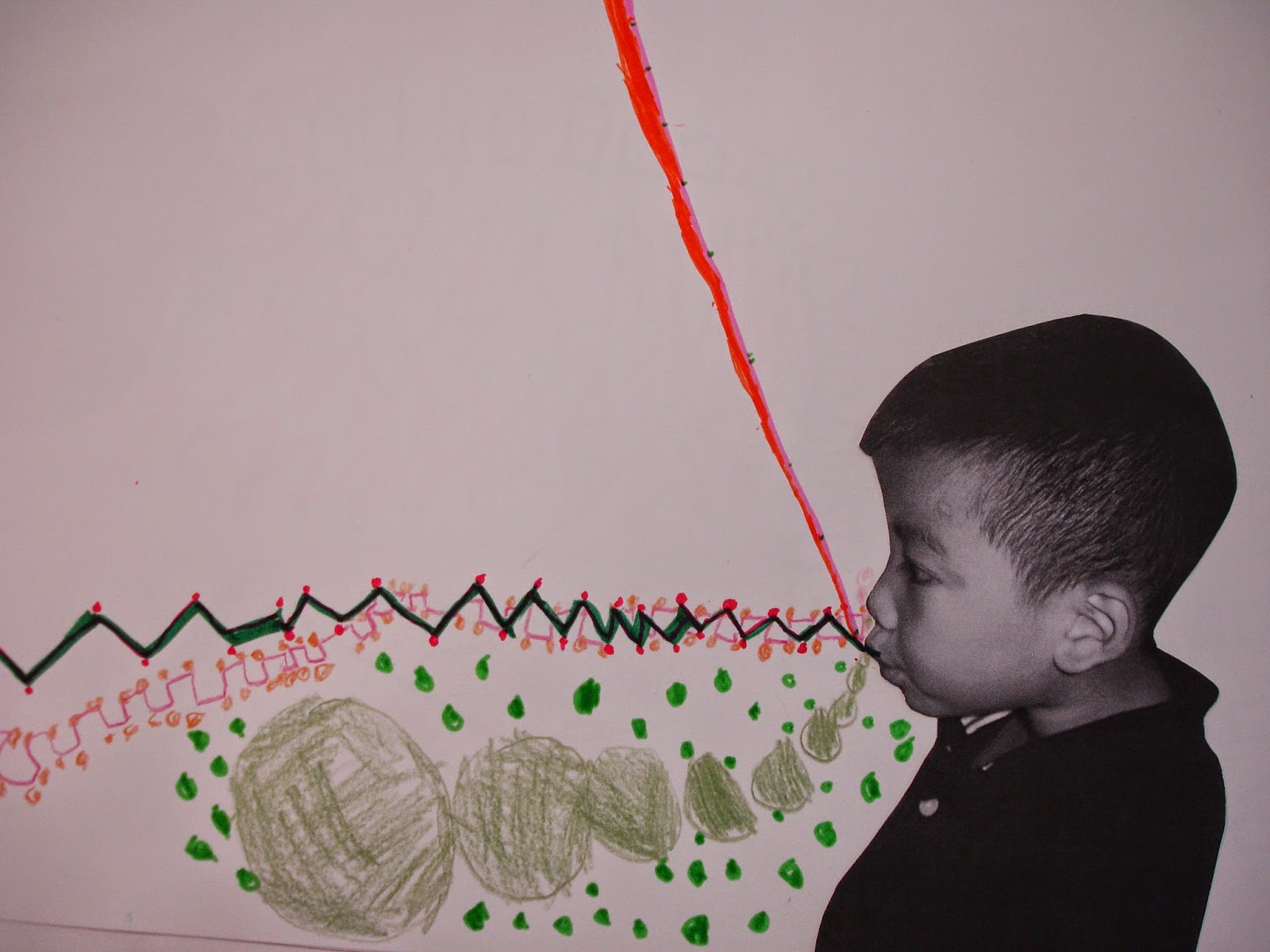 After viewing and discussing some of Haring's art students explored how the artist could have been inspired by music and dance by doing a little dancing themselves! Students listened to James Brown and danced around the room freezing in position when the music stopped. Each table then traced one of their classmateds on large paper using their "frozen" positions as inspiration.